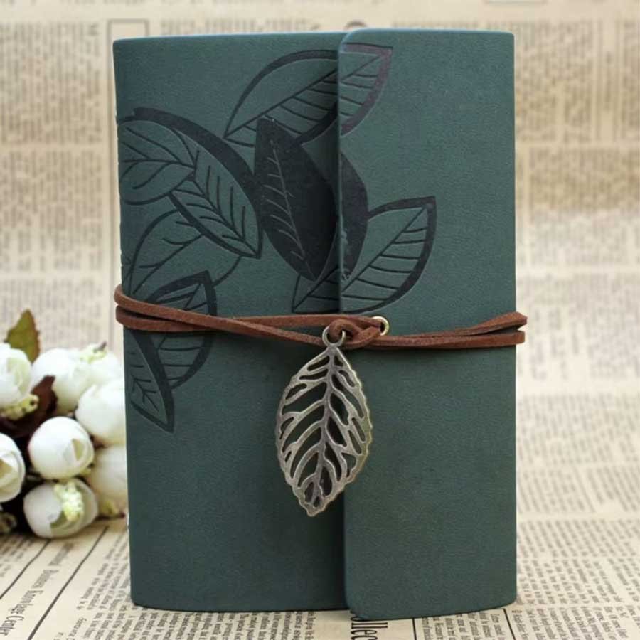 - Cada livro de diário tem um lindo pingente de folha para decoração